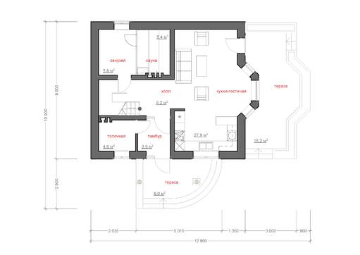 Проект содержит три раздела – Архитектурный, Конструктивный и Инженерный: водоснабжение, отопление, вентиляция, канализация, электроснабжение (приобретается за дополнительную плату) + Пояснительная записка.