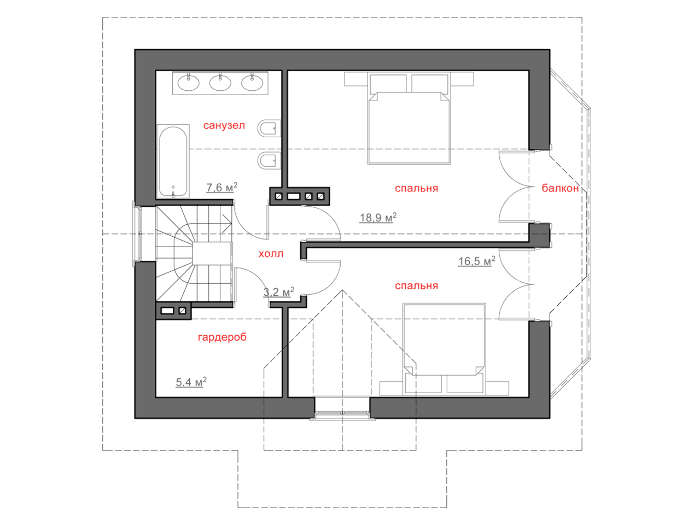 Проект содержит три раздела – Архитектурный, Конструктивный и Инженерный: водоснабжение, отопление, вентиляция, канализация, электроснабжение (приобретается за дополнительную плату) + Пояснительная записка.