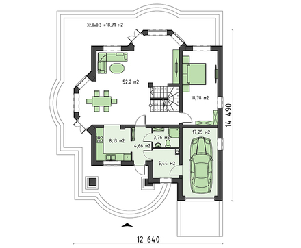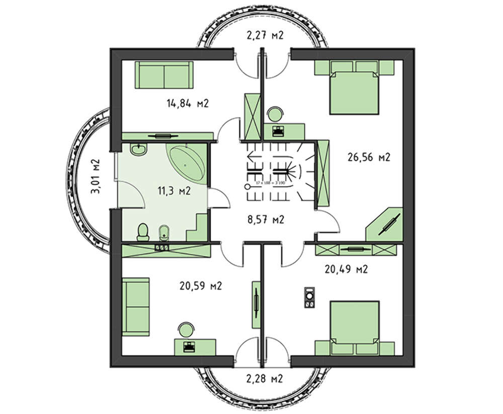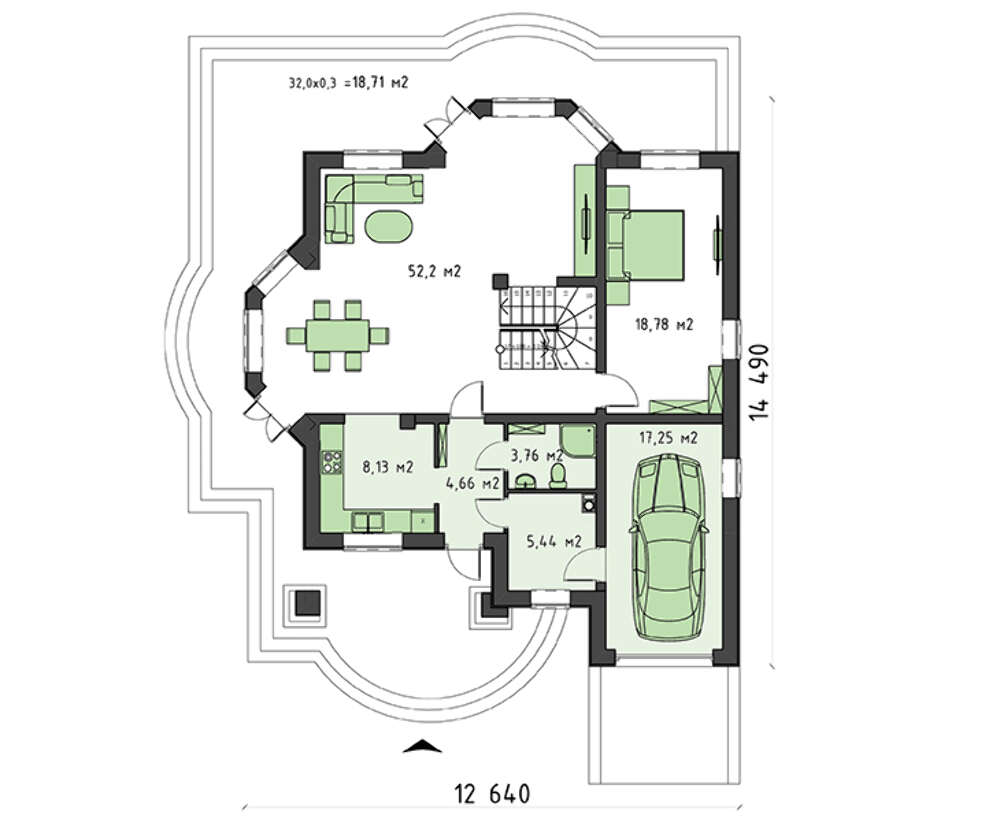 Проект содержит три раздела – Архитектурный, Конструктивный и Инженерный: водоснабжение, отопление, вентиляция, канализация, электроснабжение (приобретается за дополнительную плату) + Пояснительная записка.