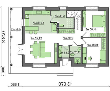 Проект содержит три раздела – АрхитектурныйКонструктивный и Инженерный: водоснабжение, отопление, вентиляция, канализация, электроснабжение (приобретается за дополнительную плату) + Пояснительная записка.