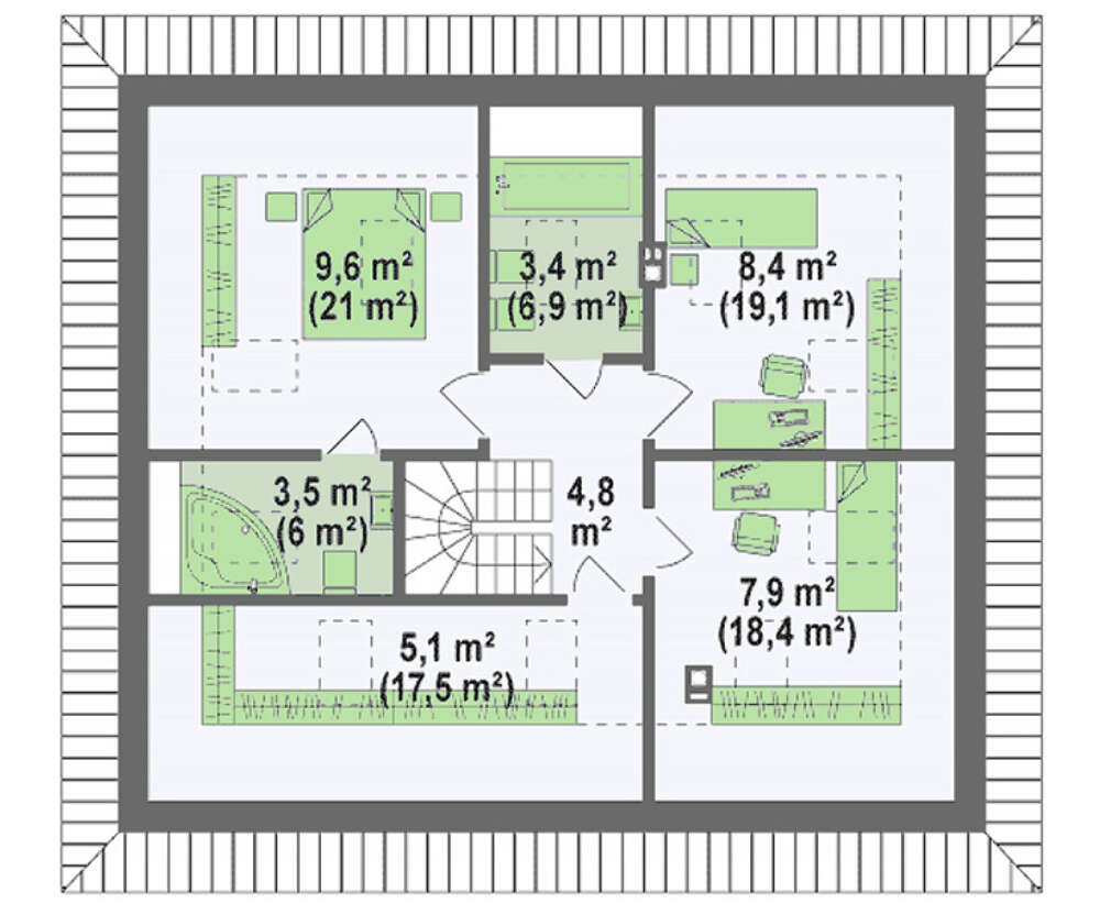 Второй этаж радует жильцов возможностью отдохнуть, здесь созданы все условия, чтобы он стал полноценным и качественным. Компактные спальни, вместительная гардеробная и нужный санузел — все необходимое есть и на месте.