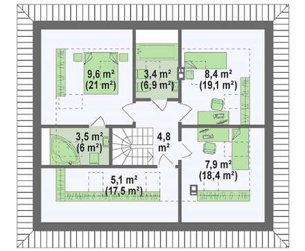 Проект содержит три раздела – АрхитектурныйКонструктивный и Инженерный: водоснабжение, отопление, вентиляция, канализация, электроснабжение (приобретается за дополнительную плату) + Пояснительная записка.