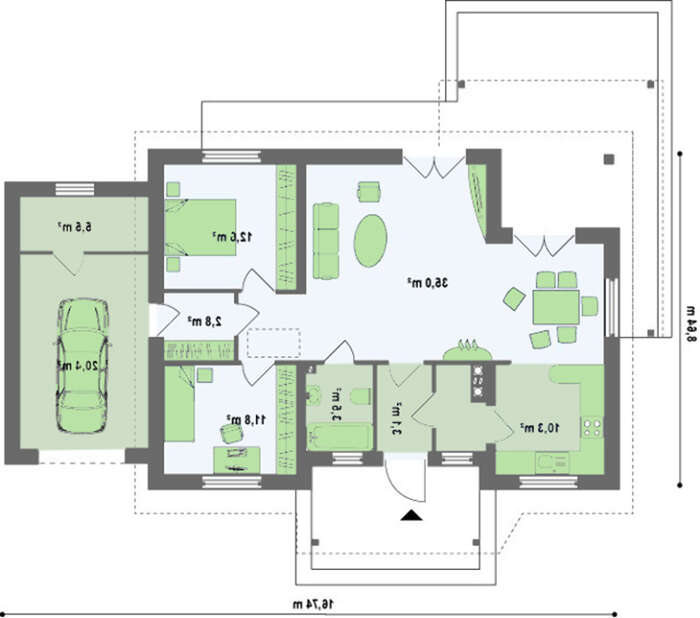 Проект содержит три раздела – АрхитектурныйКонструктивный и Инженерный: водоснабжение, отопление, вентиляция, канализация, электроснабжение (приобретается за дополнительную плату) + Пояснительная записка.