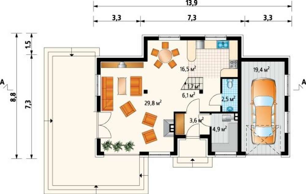 Комфортабельный жилой дом современной планировки 4M3536