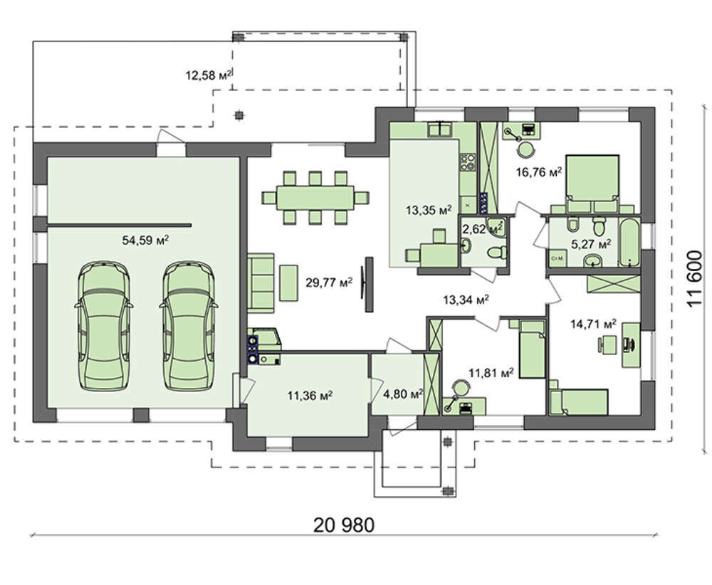 • 4M334G Комфортный дом с гаражом на две машины по типу 4M334