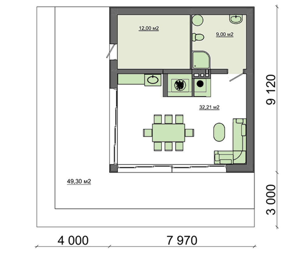 Проект содержит три раздела – Архитектурный, Конструктивный и Инженерный: водоснабжение, отопление, вентиляция, канализация, электроснабжение (приобретается за дополнительную плату) + Пояснительная записка.