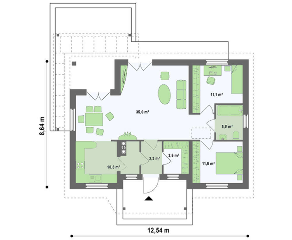 Проект дачного домика площадью 80 кв.м. 4M2335