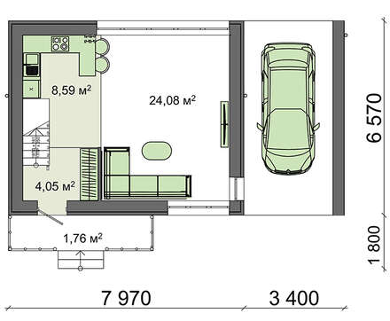 Проект содержит три раздела – Архитектурный, Конструктивный и Инженерный: водоснабжение, отопление, вентиляция, канализация, электроснабжение (приобретается за дополнительную плату) + Пояснительная записка.
