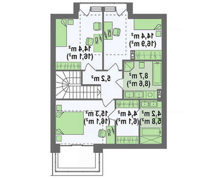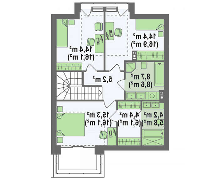 Второй этаж рассчитан на три личные комнаты. Апартаменты хозяина достойны особого внимания. Кроме большей площади, они выделены индивидуальными удобствами: санузел, гардероб и балкон.