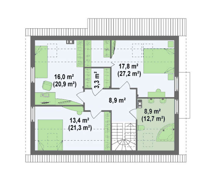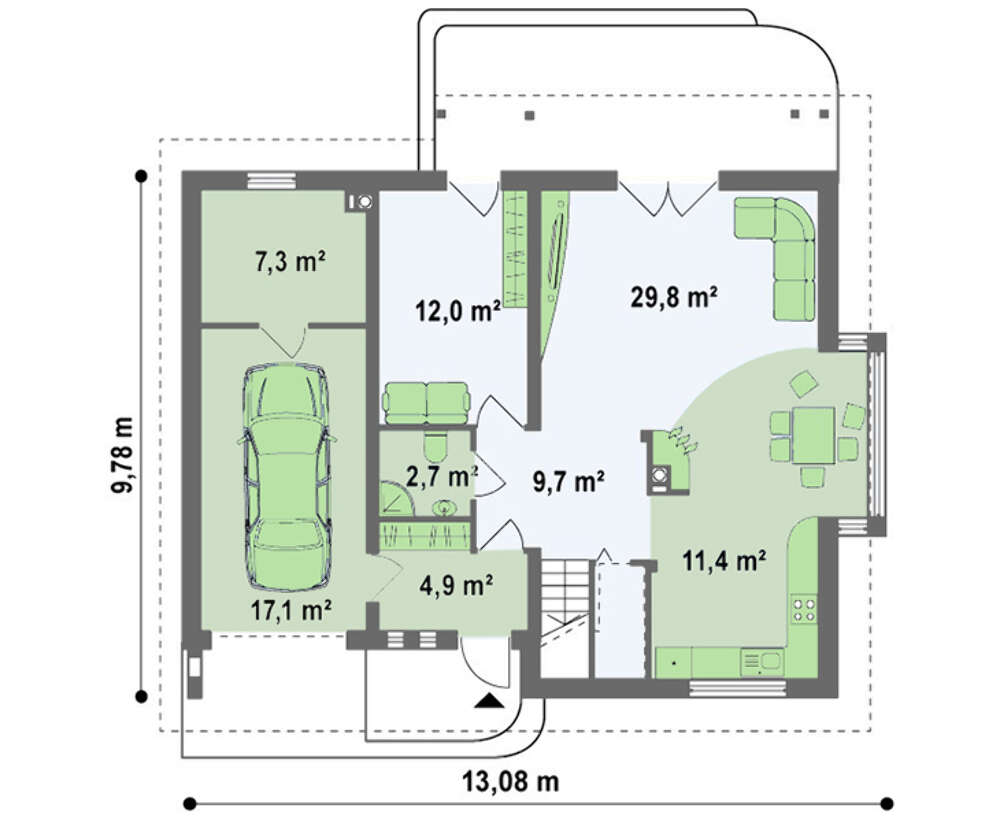 Проект содержит три раздела – АрхитектурныйКонструктивный и Инженерный: водоснабжение, отопление, вентиляция, канализация, электроснабжение (приобретается за дополнительную плату) + Пояснительная записка.