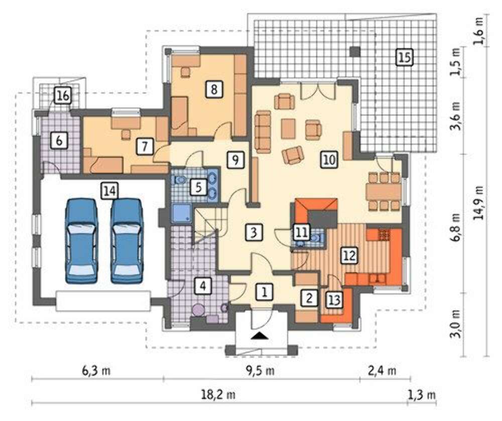 Проект содержит три раздела – АрхитектурныйКонструктивный и Инженерный: водоснабжение, отопление, вентиляция, канализация, электроснабжение (приобретается за дополнительную плату) + Пояснительная записка.