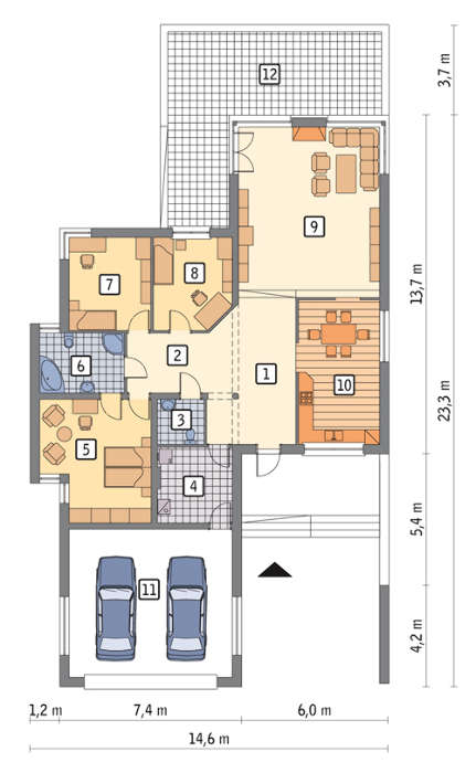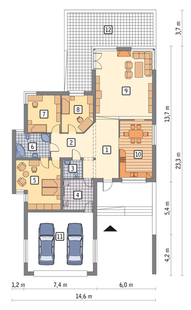 Проект содержит три раздела – АрхитектурныйКонструктивный и Инженерный: водоснабжение, отопление, вентиляция, канализация, электроснабжение (приобретается за дополнительную плату) + Пояснительная записка.