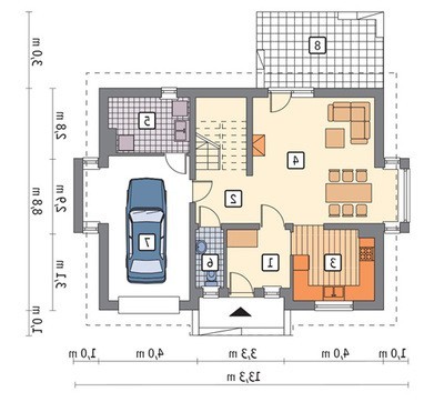 Проект содержит три раздела – АрхитектурныйКонструктивный и Инженерный: водоснабжение, отопление, вентиляция, канализация, электроснабжение (приобретается за дополнительную плату) + Пояснительная записка.