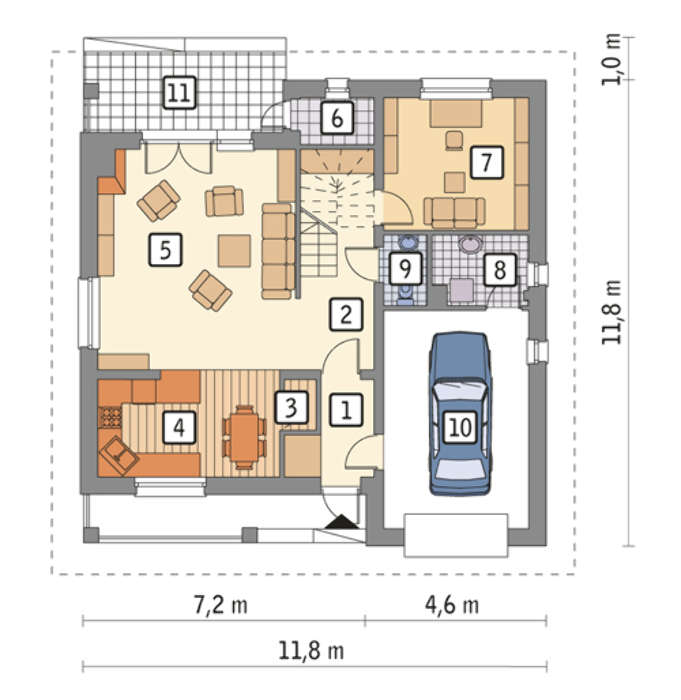 Проект содержит три раздела – АрхитектурныйКонструктивный и Инженерный: водоснабжение, отопление, вентиляция, канализация, электроснабжение (приобретается за дополнительную плату) + Пояснительная записка.