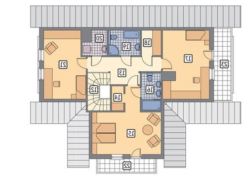 Проект содержит три раздела – АрхитектурныйКонструктивный и Инженерный: водоснабжение, отопление, вентиляция, канализация, электроснабжение (приобретается за дополнительную плату) + Пояснительная записка.