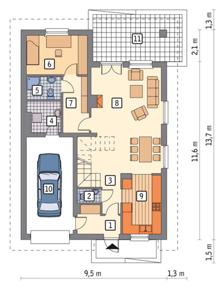 Проект содержит три раздела – АрхитектурныйКонструктивный и Инженерный: водоснабжение, отопление, вентиляция, канализация, электроснабжение (приобретается за дополнительную плату) + Пояснительная записка.