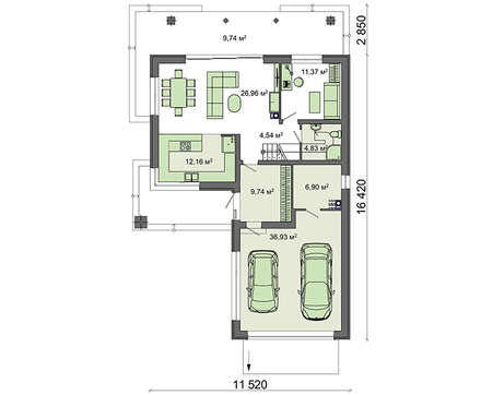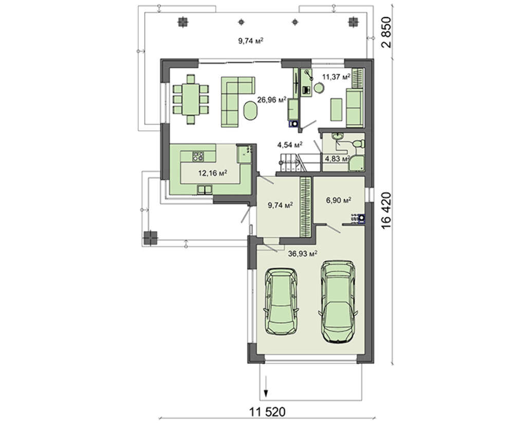 Прятать автомобили от атмосферных осадков планируется во вместительном гараже. Имеется площадь для автомастерской, ее габаритов достаточно для хранения инструментов и приспособлений.