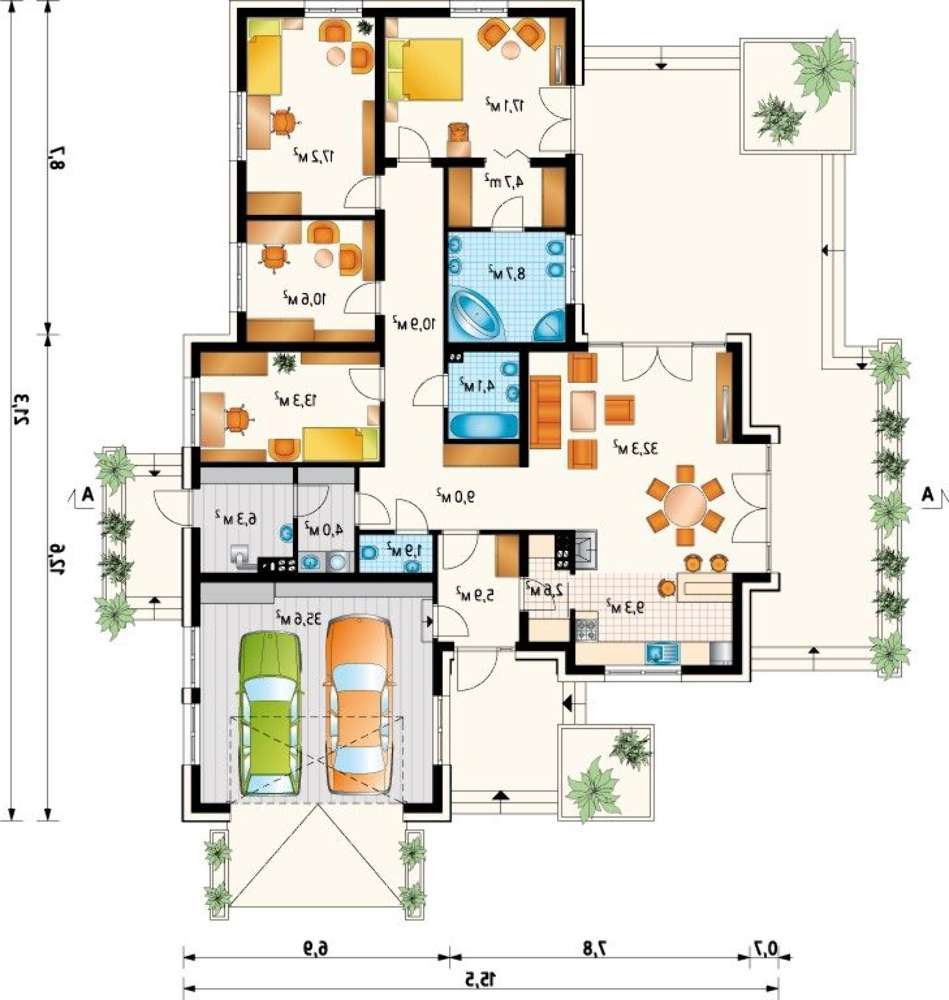• 4M3765a Красивый одноэтажный дом со встроенным гаражом для двух машин