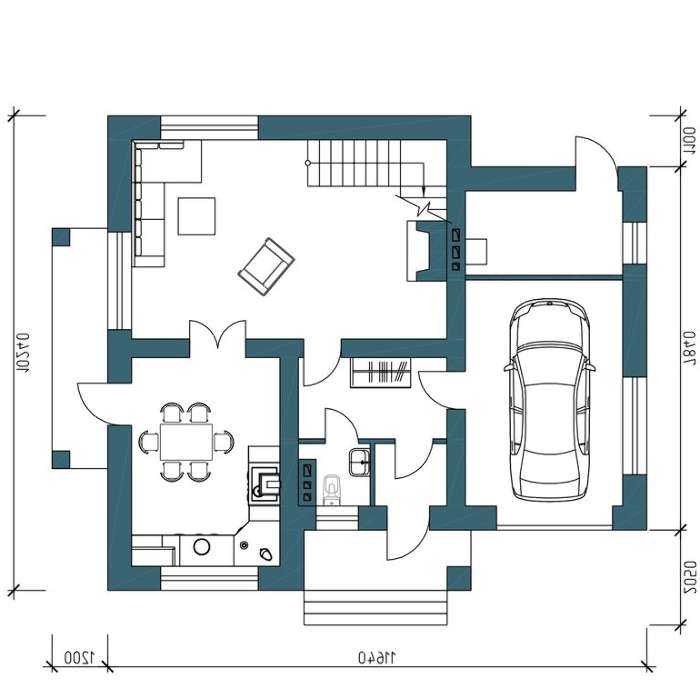Первый этаж разумно разделен на помещения разного назначения. Небольшой, но компактный гараж, поможет в комфортных условиях хранить автомобиль. Примыкающее помещение топочной удобно использовать для размещения инструмента или организации мастерской. Гостиная выделена в отдельную комнату, имеет собственный выход на террасу. Это дает возможность любую дружескую встречу перенести на свежий воздух и провести в беседке, увитой розами и виноградом. Предусмотрен действующий камин, он не только создаст душевную теплую атмосферу, но и обогреет помещение. Столовая мудро соединена с кухней, такая планировка позволяет хозяйке одновременно готовить пищу и накрывать щедрые обеденные столы.