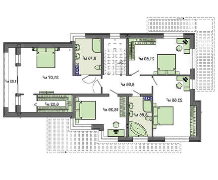 Проект содержит три раздела – Архитектурный, Конструктивный и Инженерный: водоснабжение, отопление, вентиляция, канализация, электроснабжение (приобретается за дополнительную плату) + Пояснительная записка.
