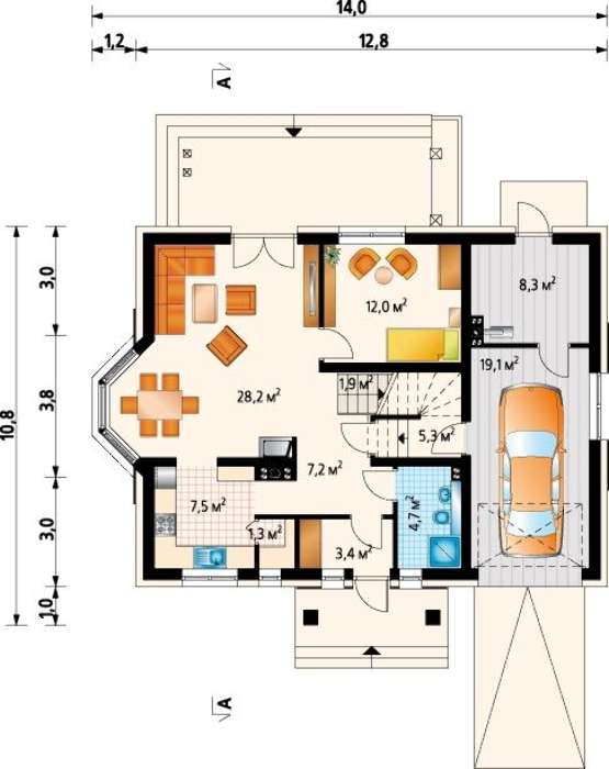 Проект содержит три раздела – АрхитектурныйКонструктивный и Инженерный: водоснабжение, отопление, вентиляция, канализация, электроснабжение (приобретается за дополнительную плату) + Пояснительная записка.