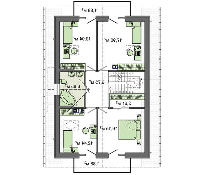 После шумной встречи гостей потребуется хороший отдых, для которого на втором этаже имеются четыре спальни. Они большие по размерам, создают дополнительный комфорт. Склонность к мечтаниям и фантазированию поддерживают балконы, выходы на которые имеются во всех спальных покоях.