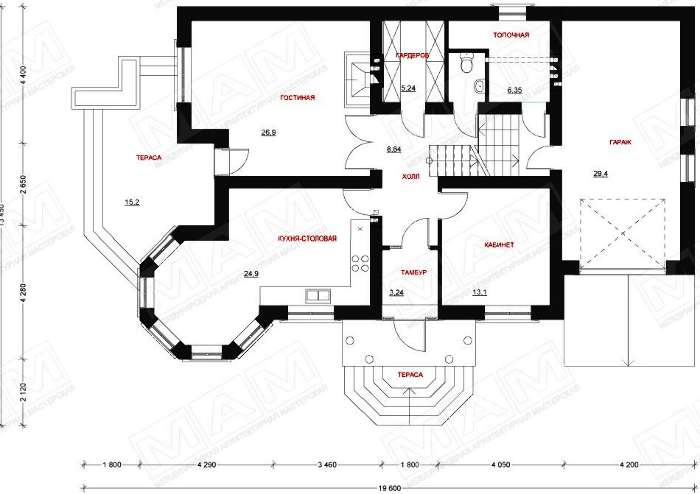 Приобретая проект дома в компании Dom4M, Вы получаете комплект чертежей - 2 экземпляра, необходимый для проведения строительных работ
