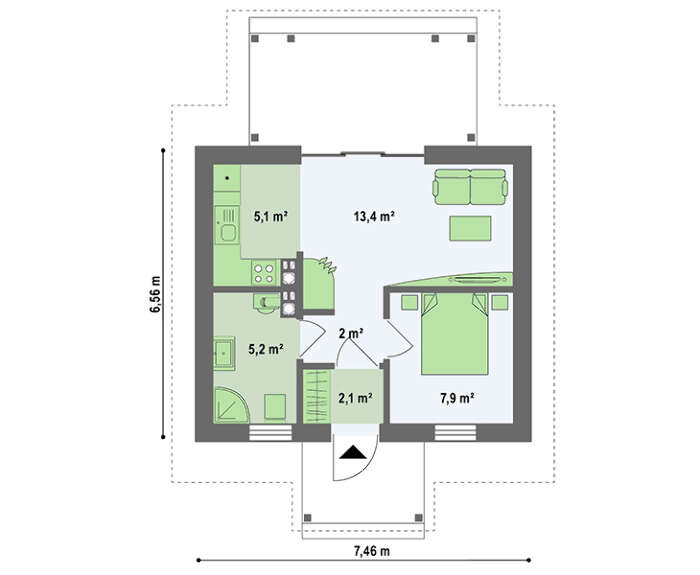 Летний коттедж 35 m²