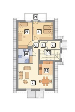 Проект содержит три раздела – АрхитектурныйКонструктивный и Инженерный: водоснабжение, отопление, вентиляция, канализация, электроснабжение (приобретается за дополнительную плату) + Пояснительная записка.