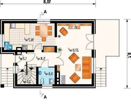 Малогабаритный коттедж с цоколем и мансардой 4M3224