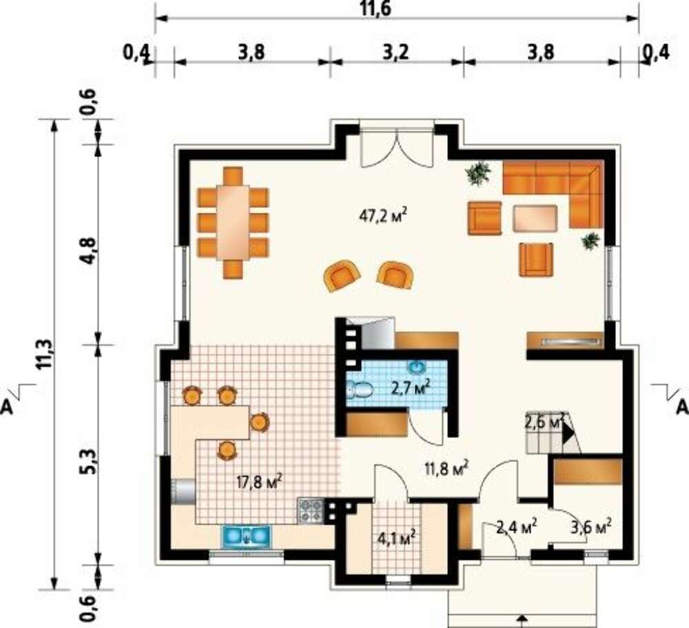 Проект содержит три раздела – АрхитектурныйКонструктивный и Инженерный: водоснабжение, отопление, вентиляция, канализация, электроснабжение (приобретается за дополнительную плату) + Пояснительная записка.