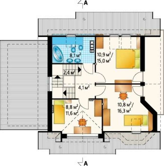 • 4M3361 Мансардный дом с круглым эркером в кухонной зоне