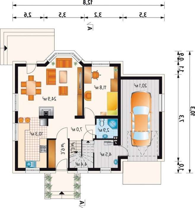 • 4M3212e Мансардный дом в традиционном стиле с пристроенным гаражом на 1 авто