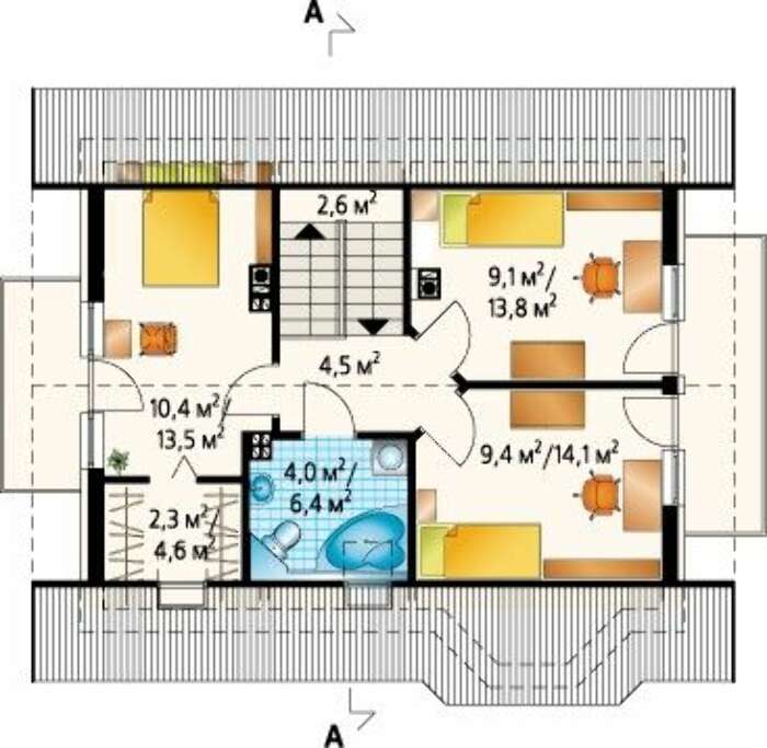 Мансардный коттедж с эркером 9 на 10 4M3304