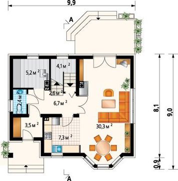 • 4M3304 Мансардный коттедж с эркером 9 на 10