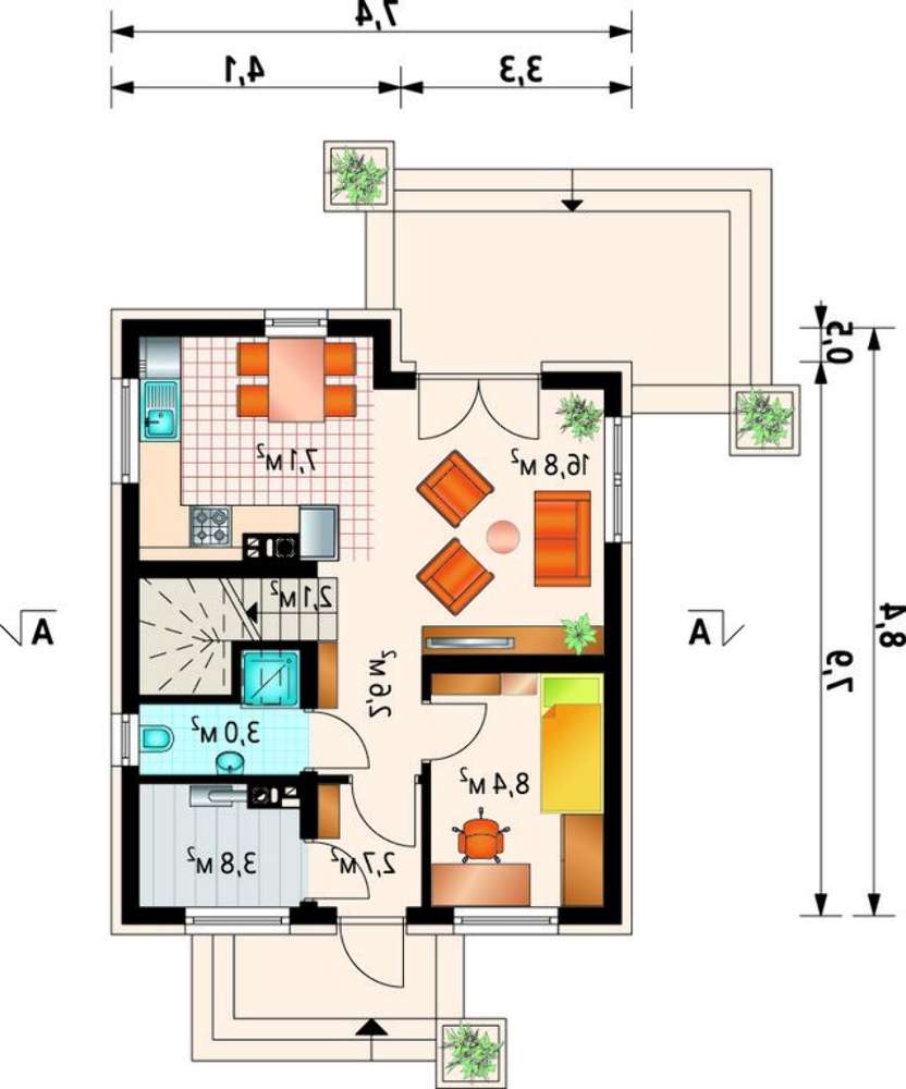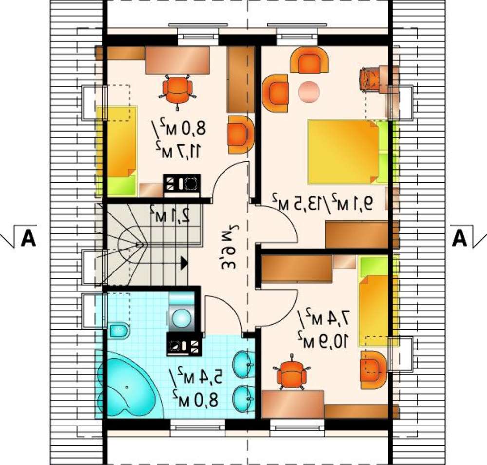 • 4M3617 Мансардный коттедж с габаритами 8 на 8