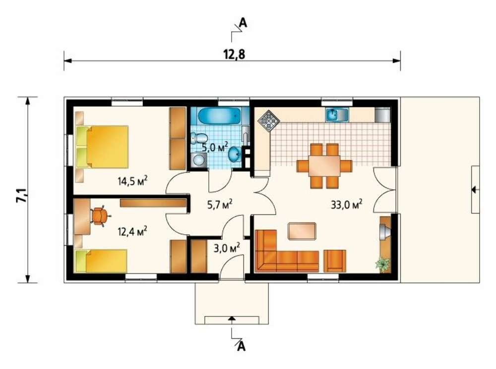 Проект содержит три раздела – АрхитектурныйКонструктивный и Инженерный: водоснабжение, отопление, вентиляция, канализация, электроснабжение (приобретается за дополнительную плату) + Пояснительная записка.