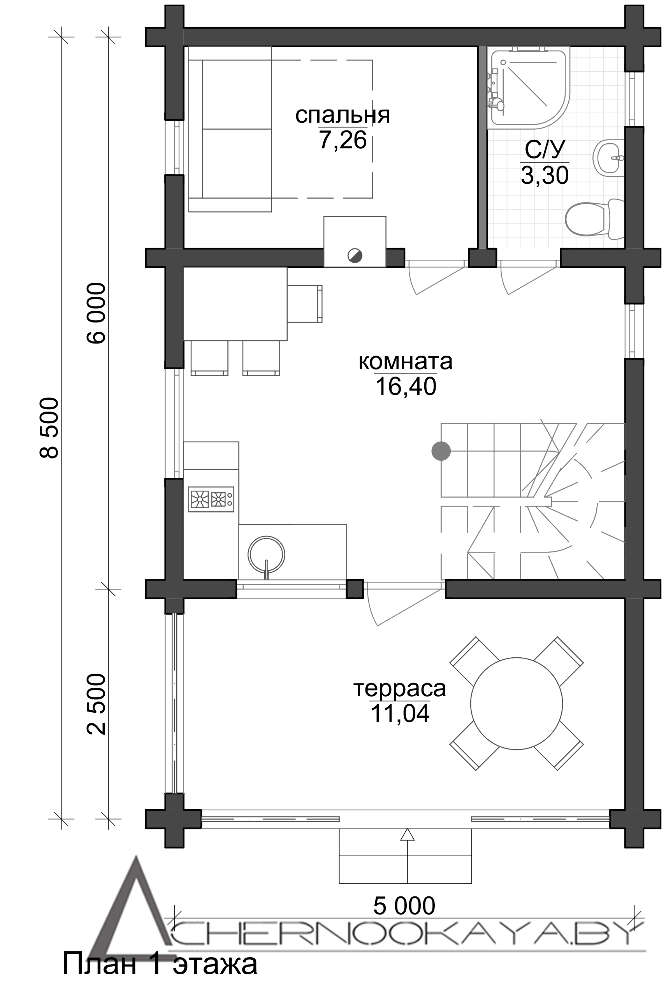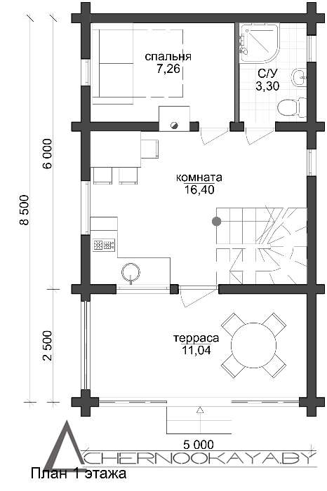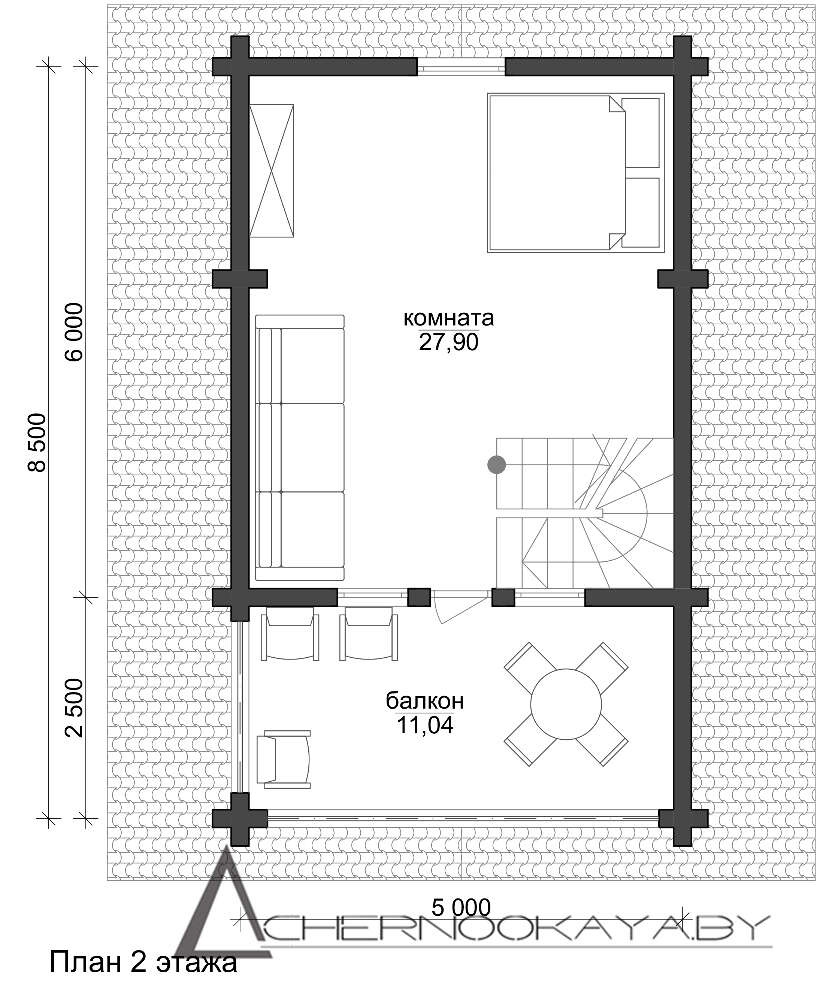 Второй этаж — это большая комната отдыха с просторным балконом. Удобная кровать и комфортабельная мебель позволят разместить друзей и близких.