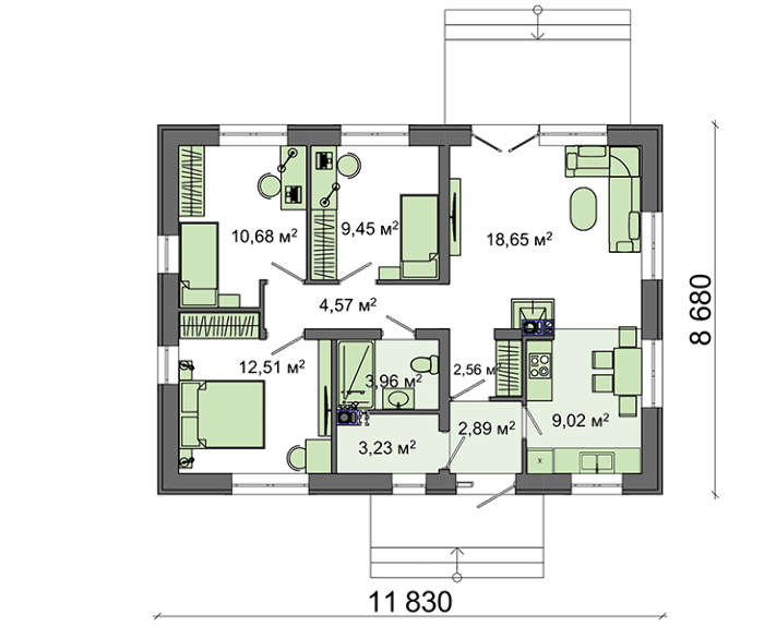 • 4M3518 Небольшой дом на четыре жилые комнаты
