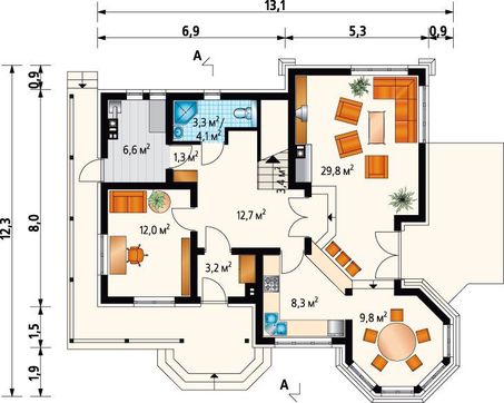 Высота дома:9.00 м