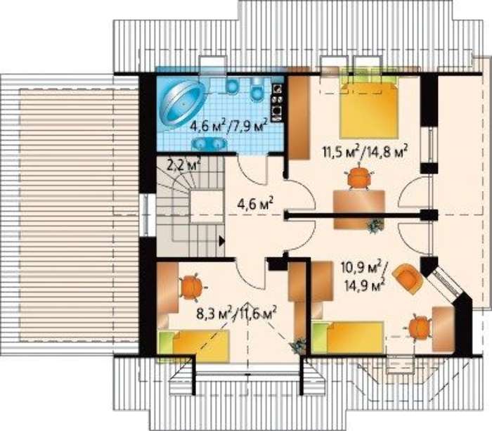 Три небольшие спальные комнаты второго этажа — отличное место для отдыха и личных дел членов семьи. Два помещения имеют выход на изящный и аккуратный балкон, здесь можно не только пить утренний кофе и наслаждаться вкусом вечернего чая. Места достаточно для шезлонга и кресел, которые максимально настраивают на расслабление и помогают мечтать.