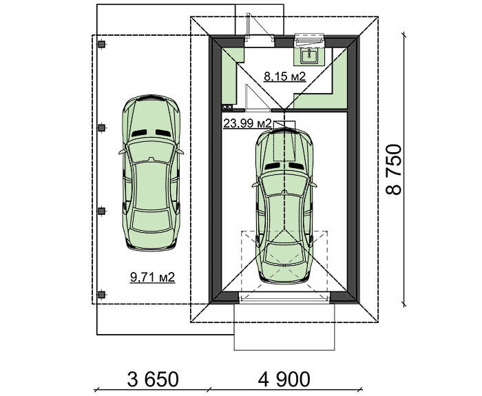 • 4M6076 Небольшой гараж на 1 авто с навесом