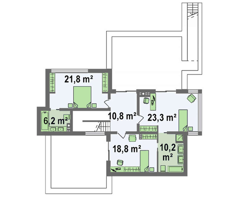 Второй этаж представлен зоной личных помещений. Все апартаменты интересные и неповторимы. Собственные гардеробы, санитарные удобства и выход на просторную террасу делает спальни по-настоящему уютными и комфортными.
