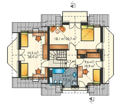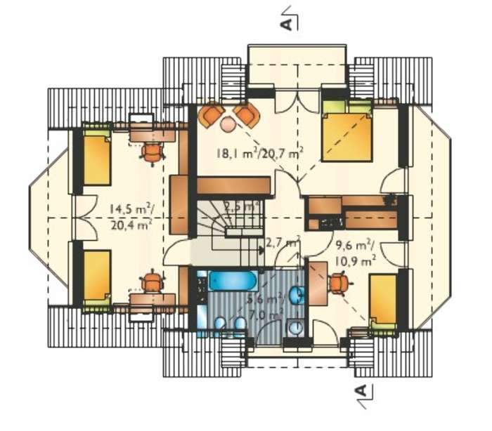 Второй этаж спроектирован во благо проживающих. Все спальни имеют выходы на балкон. Здесь сделано необходимое для того, чтобы максимально расслабиться, отдохнуть, заняться своими личными делами. Особо выделена комната хозяина, под нее отведена самая большая площадь и предусмотрен личный балкон.