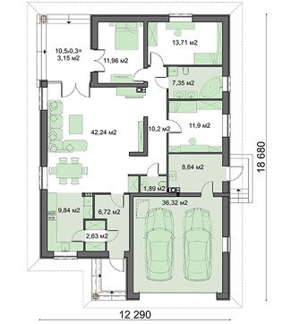 Проект содержит три раздела – АрхитектурныйКонструктивный и Инженерный: водоснабжение, отопление, вентиляция, канализация, электроснабжение (приобретается за дополнительную плату) + Пояснительная записка.