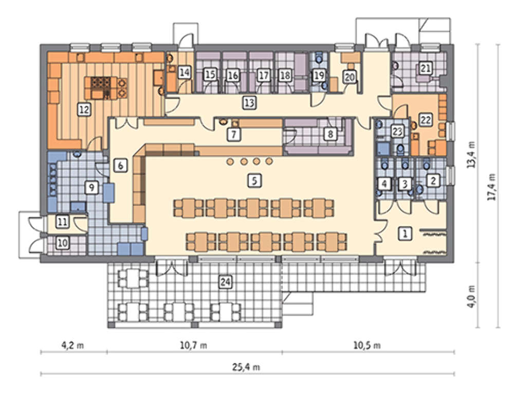 Проект содержит три раздела – АрхитектурныйКонструктивный и Инженерный: водоснабжение, отопление, вентиляция, канализация, электроснабжение (приобретается за дополнительную плату) + Пояснительная записка.
