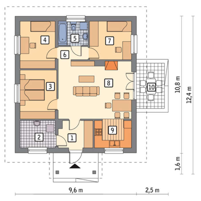 Проект содержит три раздела – АрхитектурныйКонструктивный и Инженерный: водоснабжение, отопление, вентиляция, канализация, электроснабжение (приобретается за дополнительную плату) + Пояснительная записка.