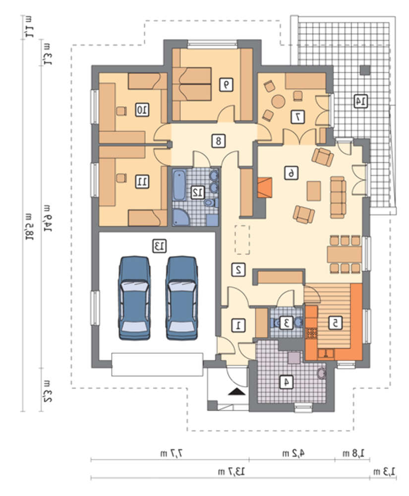Проект содержит три раздела – АрхитектурныйКонструктивный и Инженерный: водоснабжение, отопление, вентиляция, канализация, электроснабжение (приобретается за дополнительную плату) + Пояснительная записка.