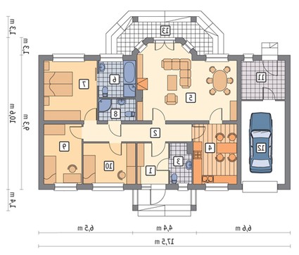 • 4M6334 Одноэтажный дом с большим крыльцом