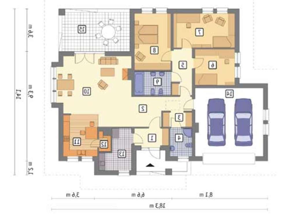 • 4M6115 Одноэтажный дом с гаражом на 2 авто